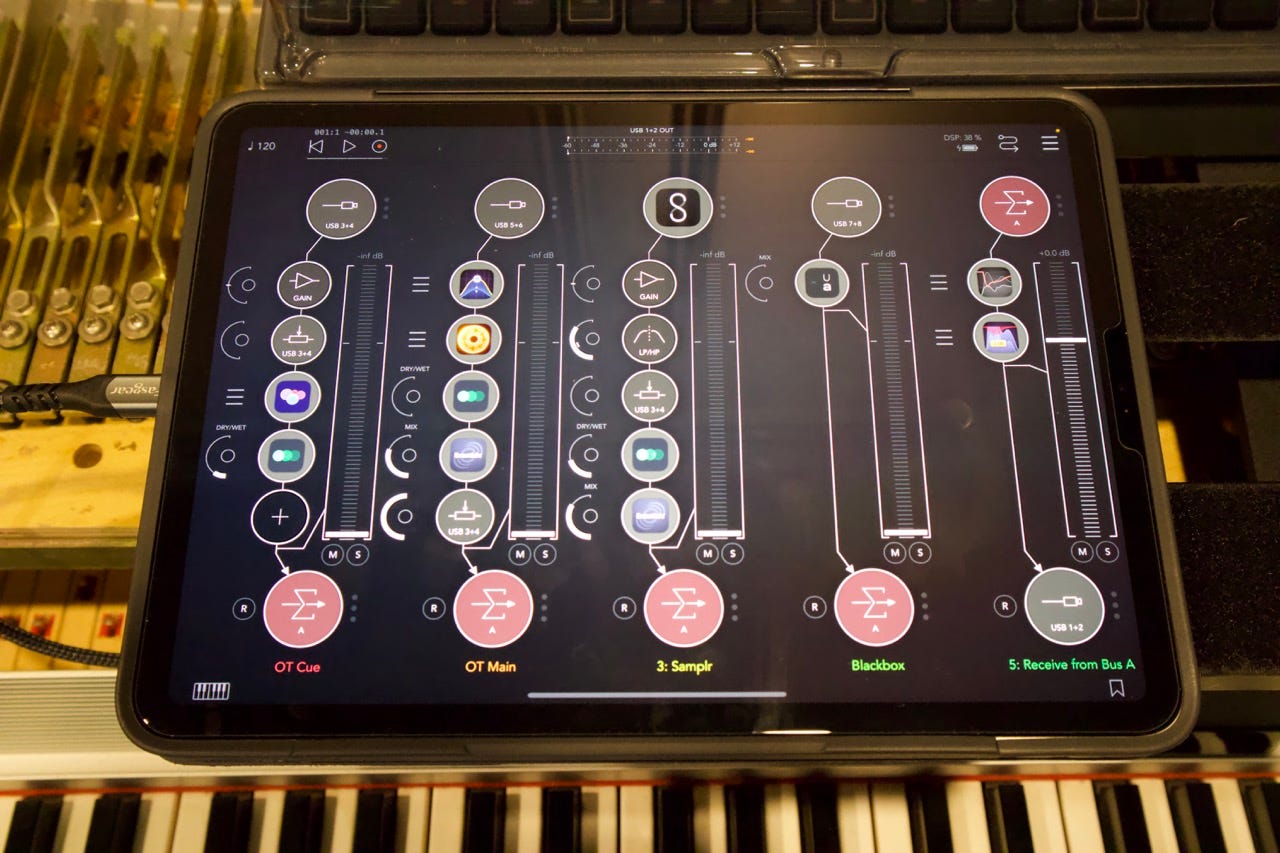 Of course, iPad is here, too, as a do-it-all utility device: sampling, looping, effects processing, mixing, and recording.